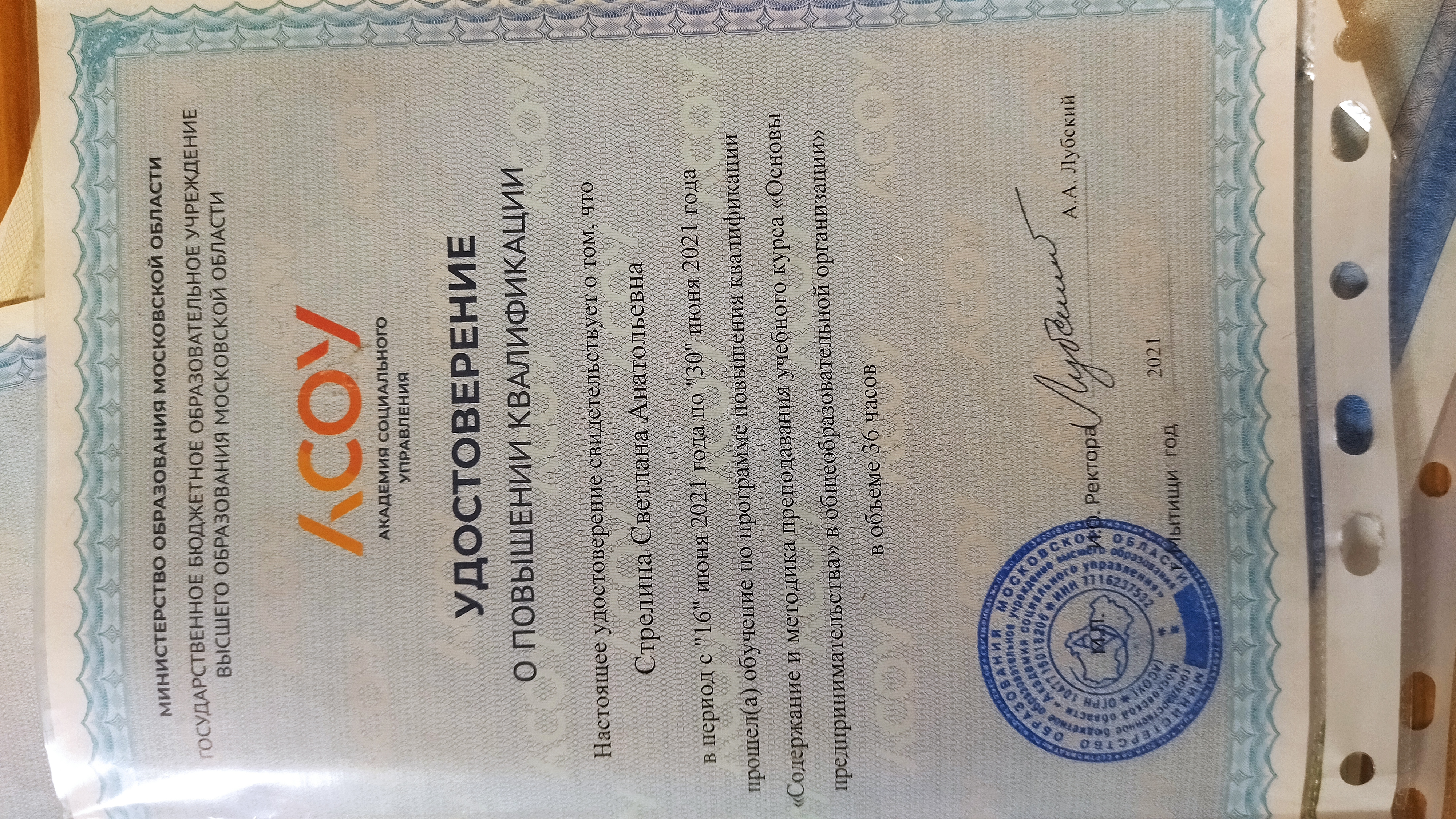 удостоверение Основы предпри-нимательства
